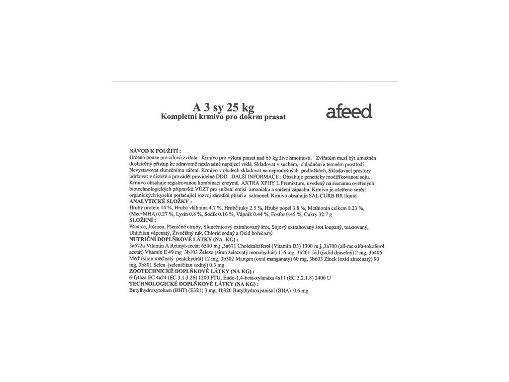 Afeedmix Kompletní krmivo pro výkrm prasat A3