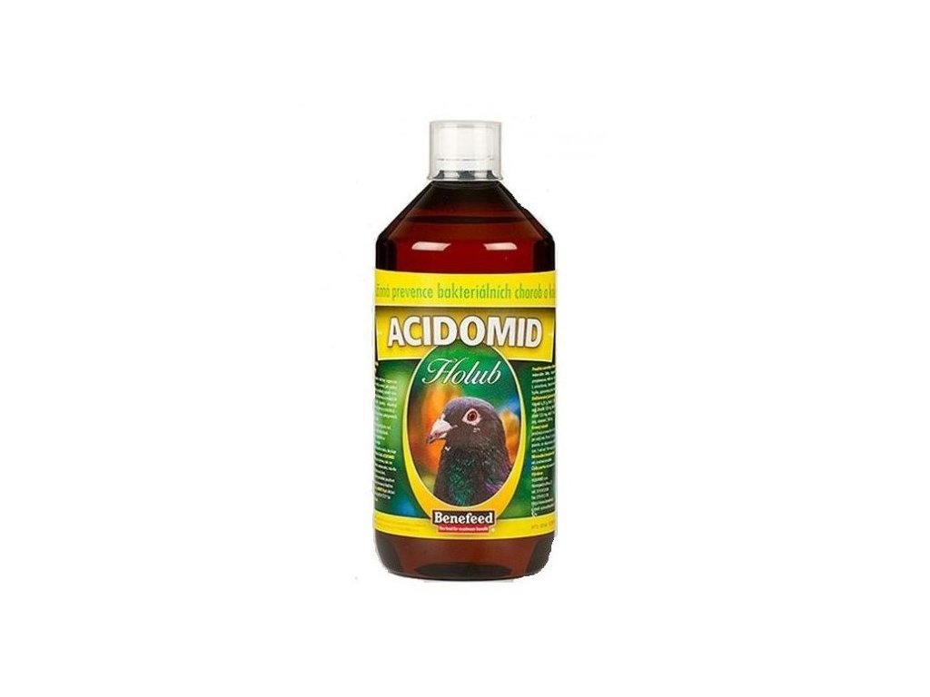 Složení Acidomid H holubi 500ml Minerální látky, elektrolyty, organické kyseliny (mravenčí, propionová, mléčná, octová, citronová a další), vitamín C, extrakty přírodního původu, upravená pitná voda.