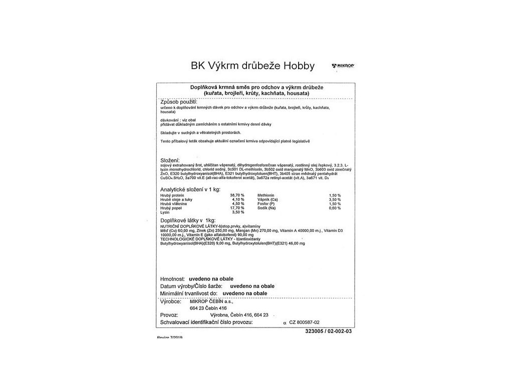 • Určeno k doplňování krmných dávek pro užitkové nosnice a výkrm drůbeže.