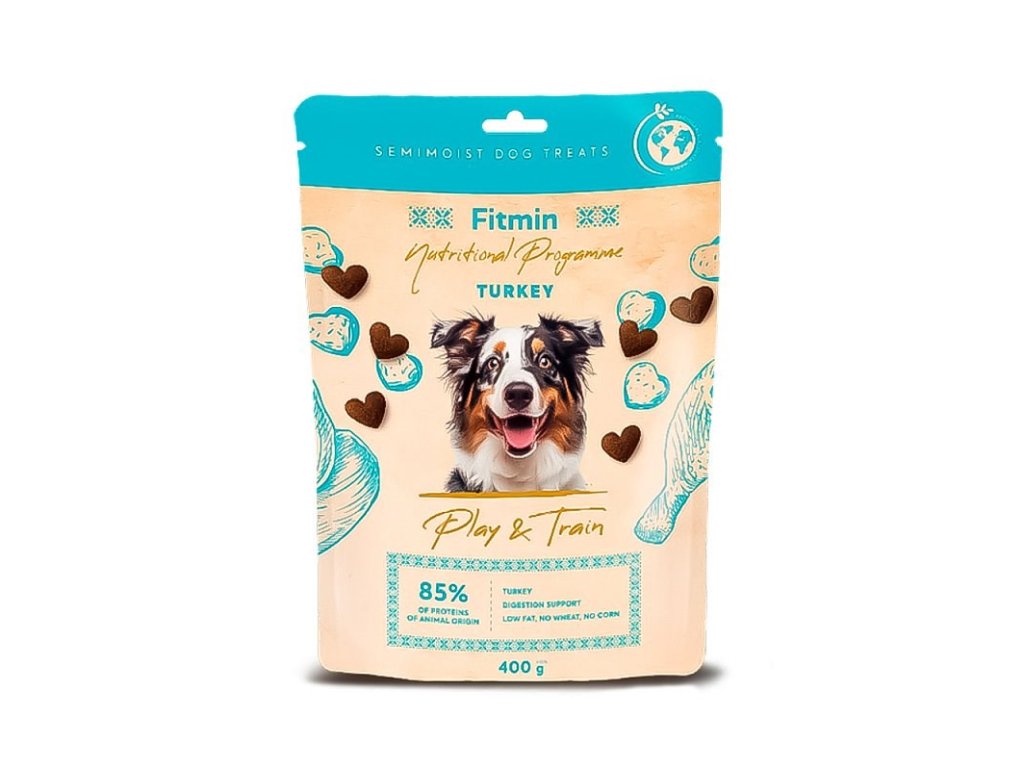 Superprémiové poloměkké pochoutky pro psy ve tvaru srdíčka Play & Train jsou nově pro Vaše mazlíčky i s krůtím masem! Pochoutka je vhodná pro štěňata od 4 měsíců věku.Tyto lahodné pochoutky jsou vyrobeny z jemného krůtího masa. Do pochoutek jsme přidali fenykl, který napomáhá proti plynatosti a podporuje zažívání. Zároveň jsme přidali betaglukany na aktivaci imunitního systému. V pochoutkách nenajdete pšenici ani kukuřici. Navíc mají nízký obsah tuku, takže se nemusíte obávat o váhu svého psa. Tyto superprémiové pochoutky jsou ideální jako zdravá odměna pro vašeho psa při hře a nebo výcviku. Vyzkoušejte je při dalším tréninku nebo při odměňování a uvidíte, jak váš pes bude nadšený.