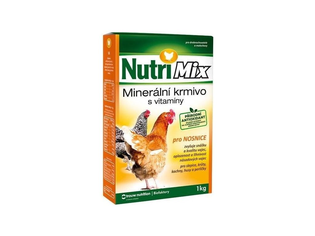 Nutrimix pro NOSNICE je určen pro doplnění minerálních látek a vitaminů do krmných dávek pro slepice, kachny, husy, krůty nebo perličky chované v drobnochovech. Podporuje zvýšení snášky, oplozenost a líhnivost násadových vajec. Zajišťuje dobrý zdravotní stav drůbeže a zlepšuje využití přijatých krmiv. Přidává se do krmné dávky, která je založena na obilných šrotech nebo jiných neplnohodnotných krmivech, popř. kuchyňských zbytcích atd.